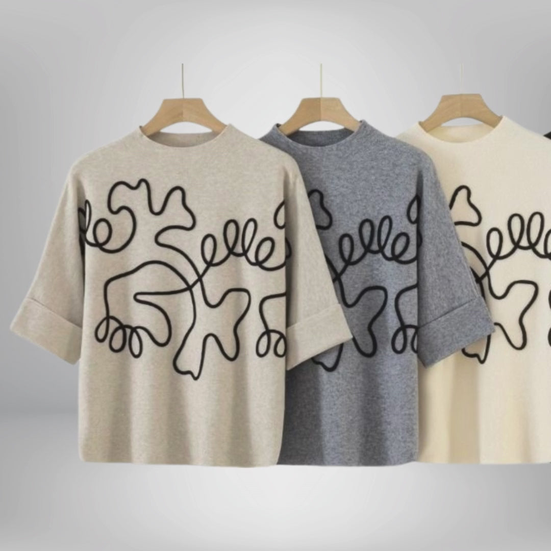 Modern și artistic, acest tricou din tricot aduce un plus de originalitate oricărei ținute. Materialul moale și plăcut pe piele asigură confort pe tot parcursul zilei, iar modelul abstract adaugă un efect vizual deosebit, transformându-l într-o piesă statement. Ideal pentru cei care iubesc stilul nonconformist și detaliile care ies în evidență.
